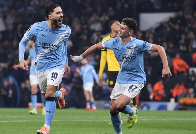 福登梅开二度,哈兰德造欧冠神迹,曼城4-1多特三连胜宣战利物浦